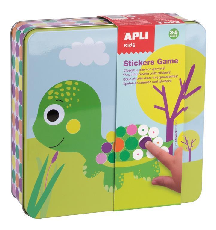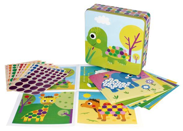 API13949 - Kovinska škatla igra z nalepkami, živali