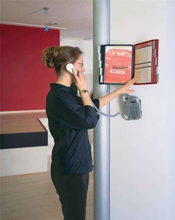 - stenski nosilec z 10 vloženimi predstavitvenimi mapami (5 črnih, 5 rdečih map)