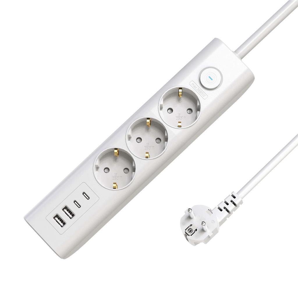 Produžni kabel Schuko s 3 utičnicama i USB priključcima, prekidačem ON/OFF, 1.5M, bijeli