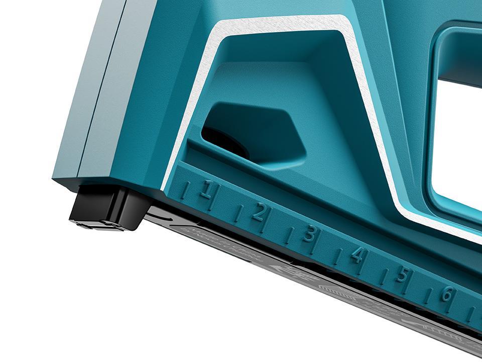 - zagotavlja pravo udarno silo za vsako delo, na mehkem ali trdem lesu, zaradi mehanske nastavitve udarne sile