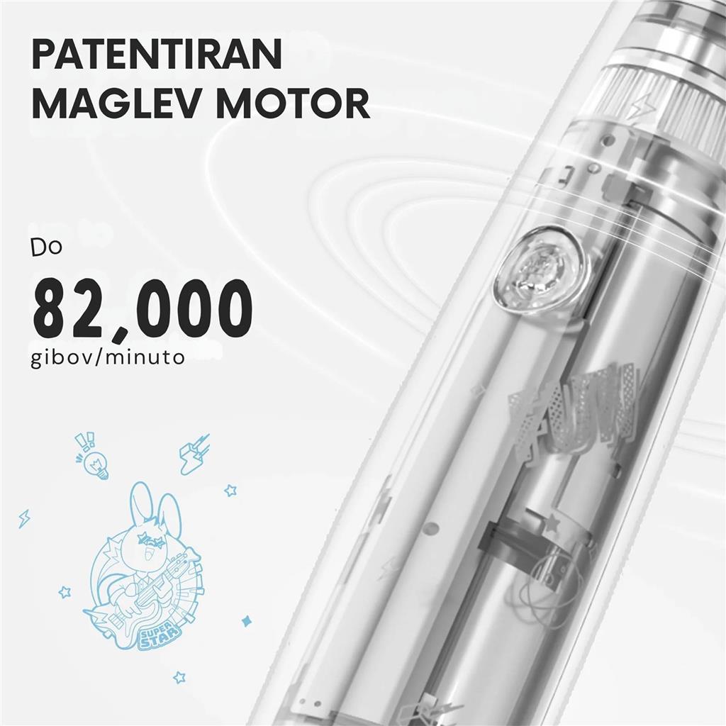 Teži samo 67 g, što je 48 % manje i 32 % manje od običnih električnih zubnih četkica – savršena veličina za dječje dlanove.