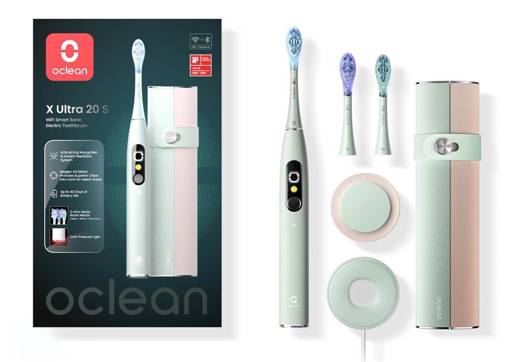 Oclean X Ultra 20 je nova generacija X Ultra serije za 2025. godinu. Nudi glasovno vođenje u stvarnom vremenu pomoću umjetne inteligencije i tehnologije provođenja zvuka kroz kost kako bi zaštitila vaše desni i potaknula bolje navike pranja zubi. U usporedbi s prethodnom verzijom X Ultra, X Ultra 20 ima preciznije praćenje 12 područja pranja i opremljena je Oclean Maglev 4.0 motorom koji postiže do 84.000 pokreta u minuti. U kombinaciji sa sustavom TurboClean i tehnologijom 40° super širokog osciliranja osigurava potpuno, brzo i učinkovito čišćenje.